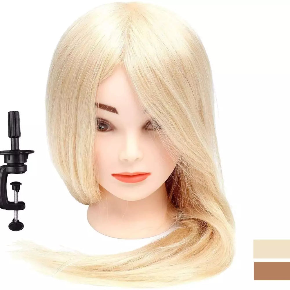 Cap de Practică Manechin cu Păr Natural 100% - Blond Auriu, 50 cm, pentru Frizerie și Coafor Dacă vrei să îți perfecționezi abilitățile în coafură, capul...