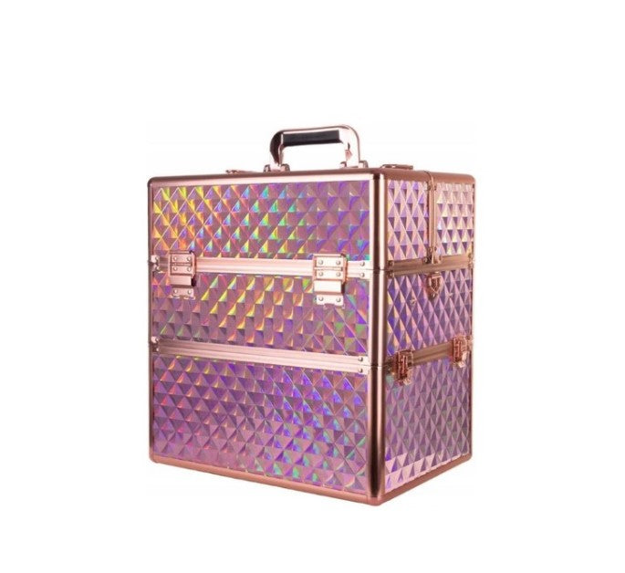 Geanta manichiură - cosmetice - XXL - model holografic roz