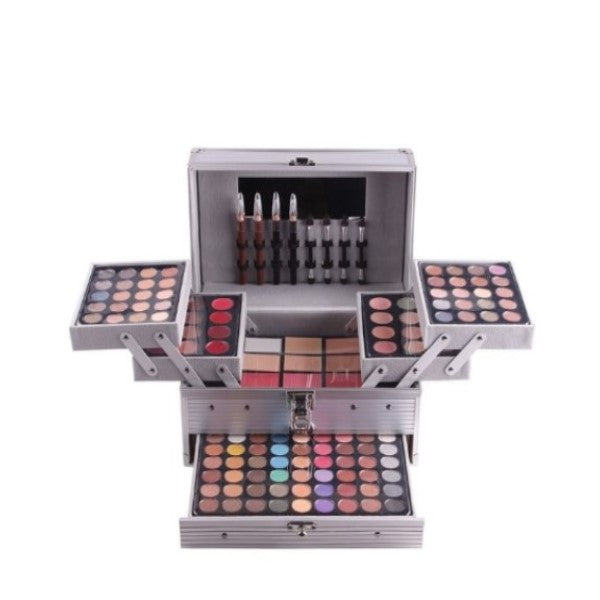 Trusa machiaj 196 nuante, geanta mare Miss Rose, Argintiu