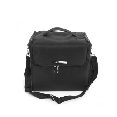 Geanta cosmetice tip valiza textila cu sertare, Negru
