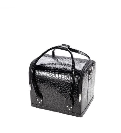 Geanta cosmetice cu organizator, aspect piele crocodil, Beauty Case