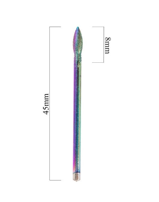 Această freză diamantată se remarcă printr-un design unic în nuanțe de curcubeu și un strat abraziv realizat din agregat de diamant și safir. Compatibilă cu majoritatea frezelor electrice de manichiură.