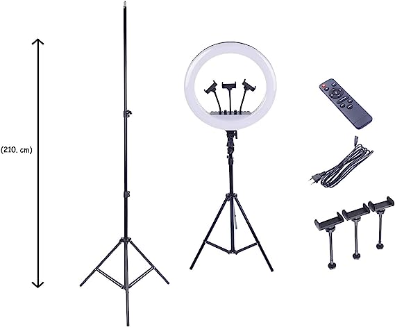 Lampa circulara Ring Light a devenit un produs must-have pentru toti cei care lucreaza in domeniul frumusetii si nu numai. Acest produs va duce calitatea fotografiilor tale la nivel de studio foto! Vine insotita cu o telecomanda cu care o poti porni sau opri (on - off), butoane prin care poti controla intensitatea luminii si de asemenea, poate emite lumina rece, calda sau neutra.