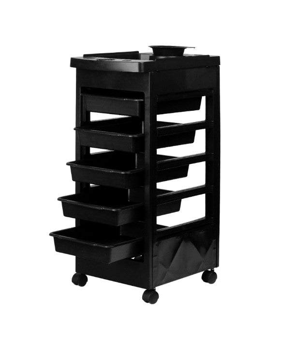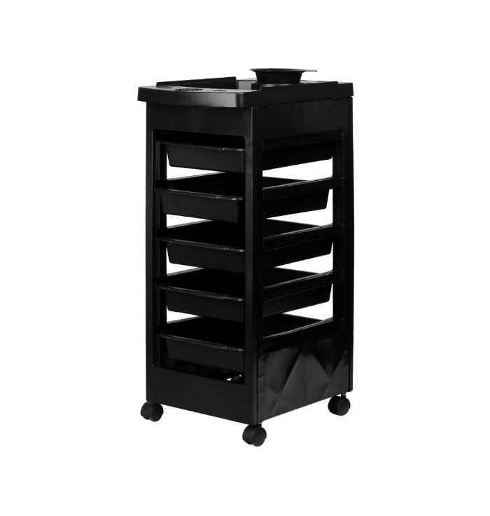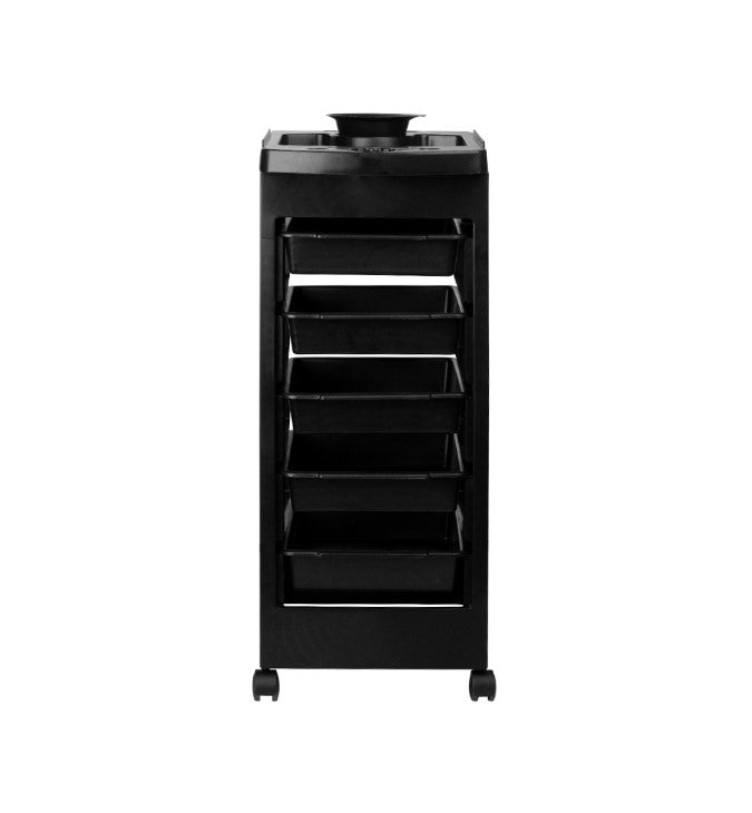 Acesta îți oferă tot ce ai nevoie pentru organizarea eficientă a accesoriilor și produselor de styling – totul la un preț accesibil. Ideal pentru saloanele de coafură, frizerii sau spații de înfrumusețare, acest mobilier practic vine echipat cu cinci cuve retractabile și roți pentru mobilitate sporită.