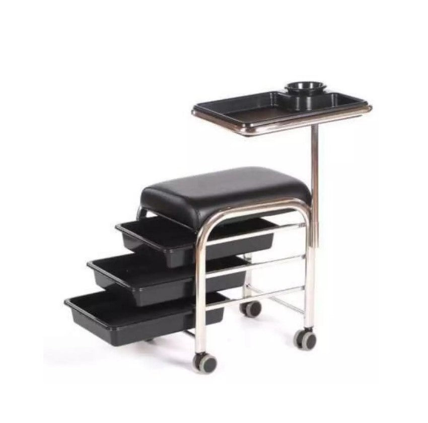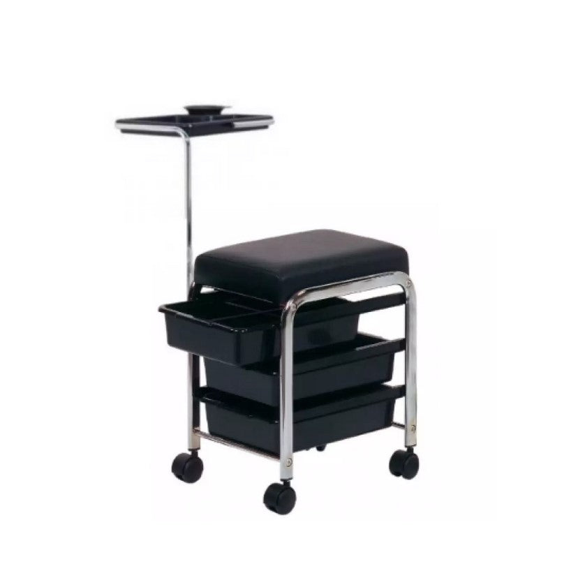 Adesea, pedichiura poate fi dificilă, însă acest troleu pentru pedichiură vă vine în ajutor, fiind echipat cu trei sertare de depozitare mobile și o masă rotativă pentru suportul ustensilelor. Masa se poate roti în jurul axului propriu, oferind flexibilitate în utilizare. Scaunul acestui troleu este foarte confortabil, asigurând un maximum de confort pentru clienții dumneavoastră. Deplasarea este facilitată de cele patru roți pivotante. Troleul include două sertare și o tăviță suplimentară pentru depozitare.